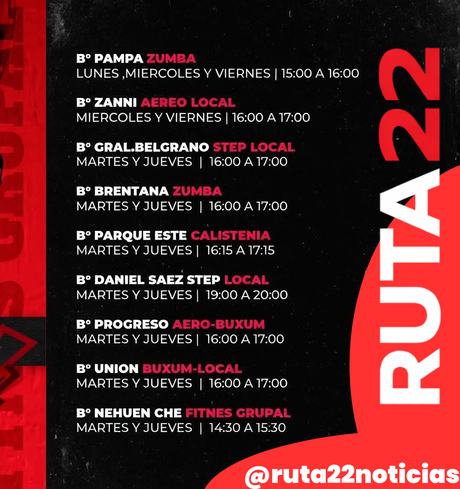 Descubrí toda la oferta deportiva que se desarrolla en los distintos barrios de Cutral Co, junto con las actividades organizadas en el Gimnasio Municipal. Una agenda pensada para fomentar la participación, el deporte y la vida saludable en la comunidad, con opciones para todas las edades y niveles.